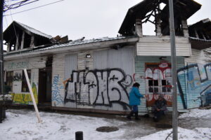 La casa que lleva 5 años incendiada cerca del centro de Punta Arenas pertenece a Pilar. Por su generosidad, es un centro que atrae a personas en situación de calle y por los mismo forma parte de la ruta habitual del Hogar de Cristo.